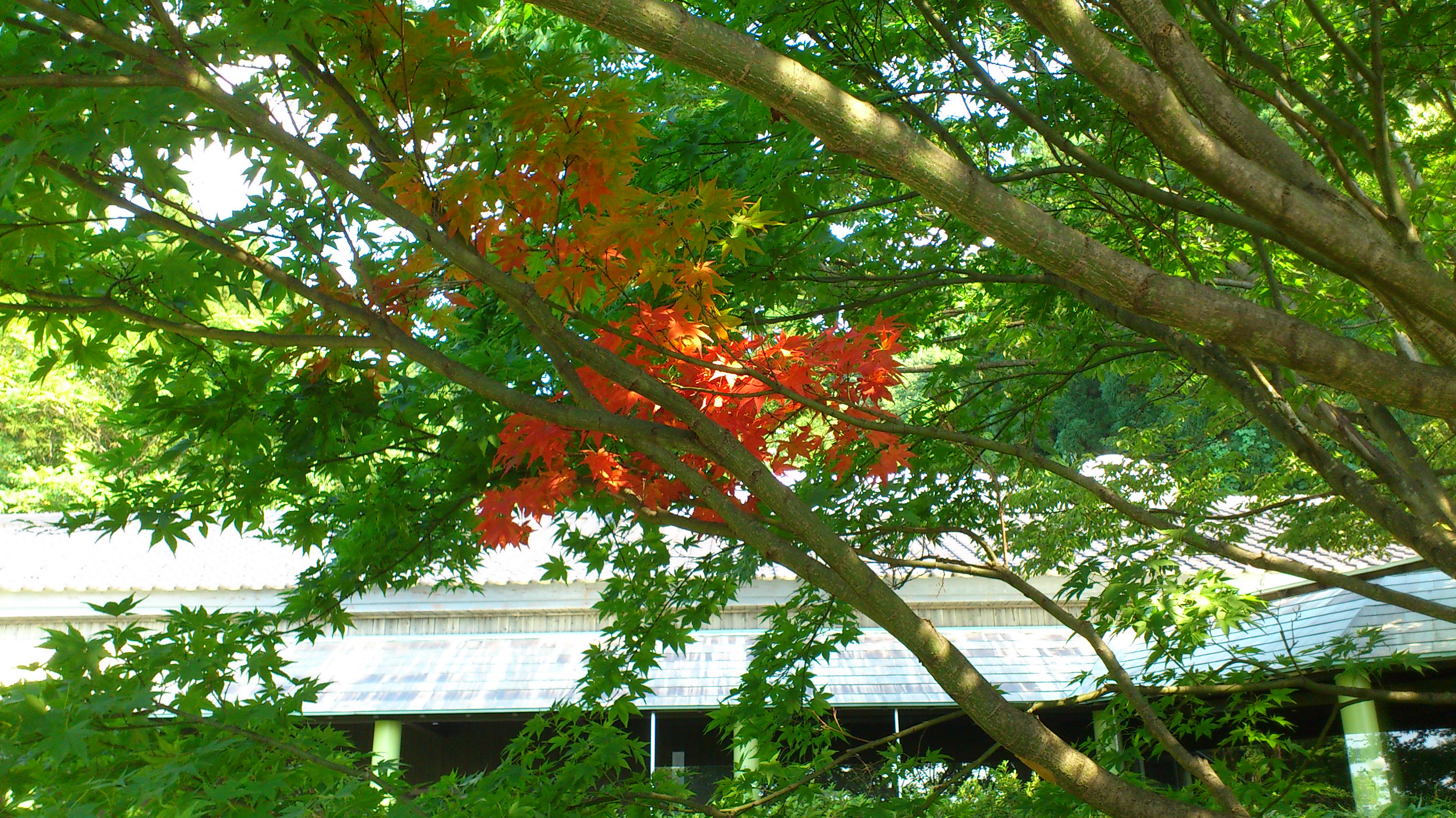 ここで紅葉したモミジを見るのは初めてですが、藤岡牧夫美術館としてオープンする以前、中国美術館だった頃からここの面倒をみてくれているSさんによると、毎年この時季に葉の一部が赤く色付くのだそうです。
