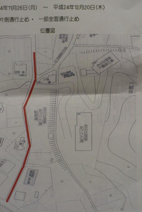12月20日(木)までの日程で、おぶせ温泉西側の道路で水道工事が行われます。