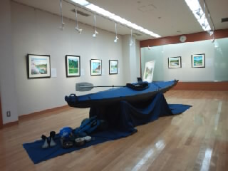 川上村文化センターでは原画展の準備が終わり、明日のイベントのお客様がいらっしゃるのを待つばかりです。カヌーも展示してあります。10月6日(日)までやっておりますので、是非お出掛けください。なお、藤岡が会場にいるのは明日までです。