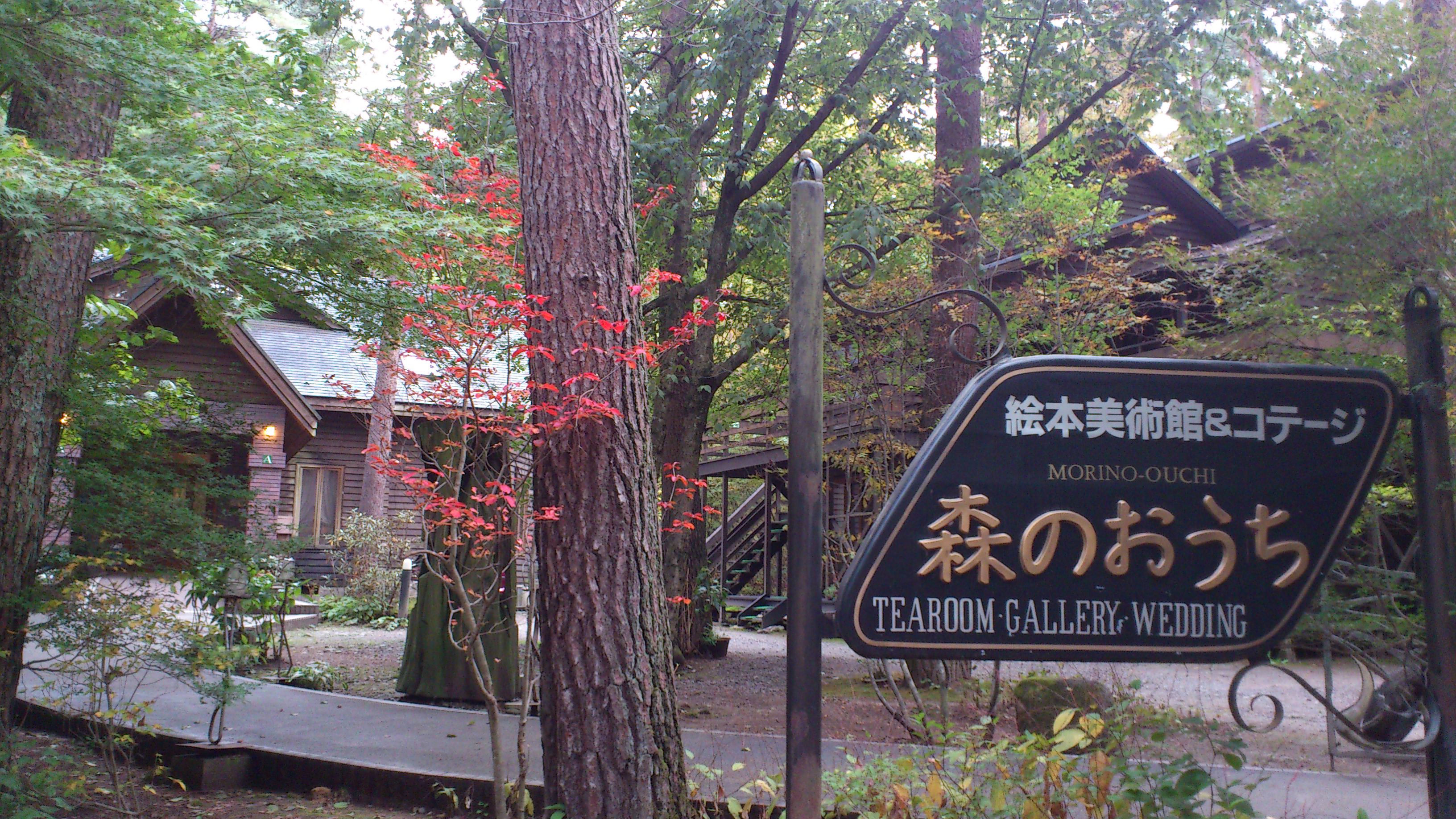 「絵本美術館森のおうち」は何年か前に藤岡の原画展をやらせていただき大変お世話になったところです。赤松林の森の中にあるログハウス風の建物の中に入ると、いい香りがしました。館内にある喫茶ポラーノのせいでしょうか。