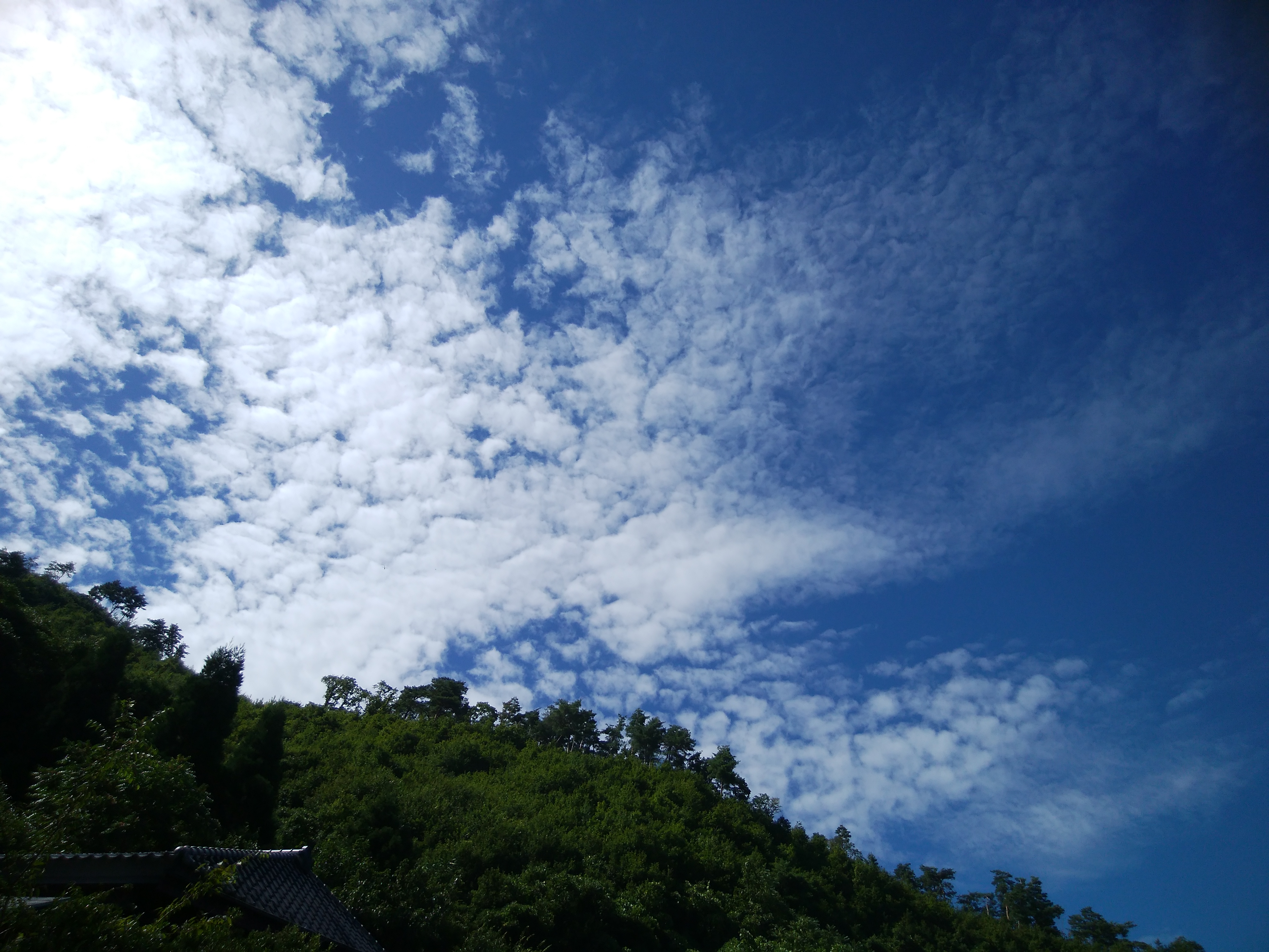 今朝のこの青空です。嬉しいことにウロコ雲も現れました。日中は暑く、空も