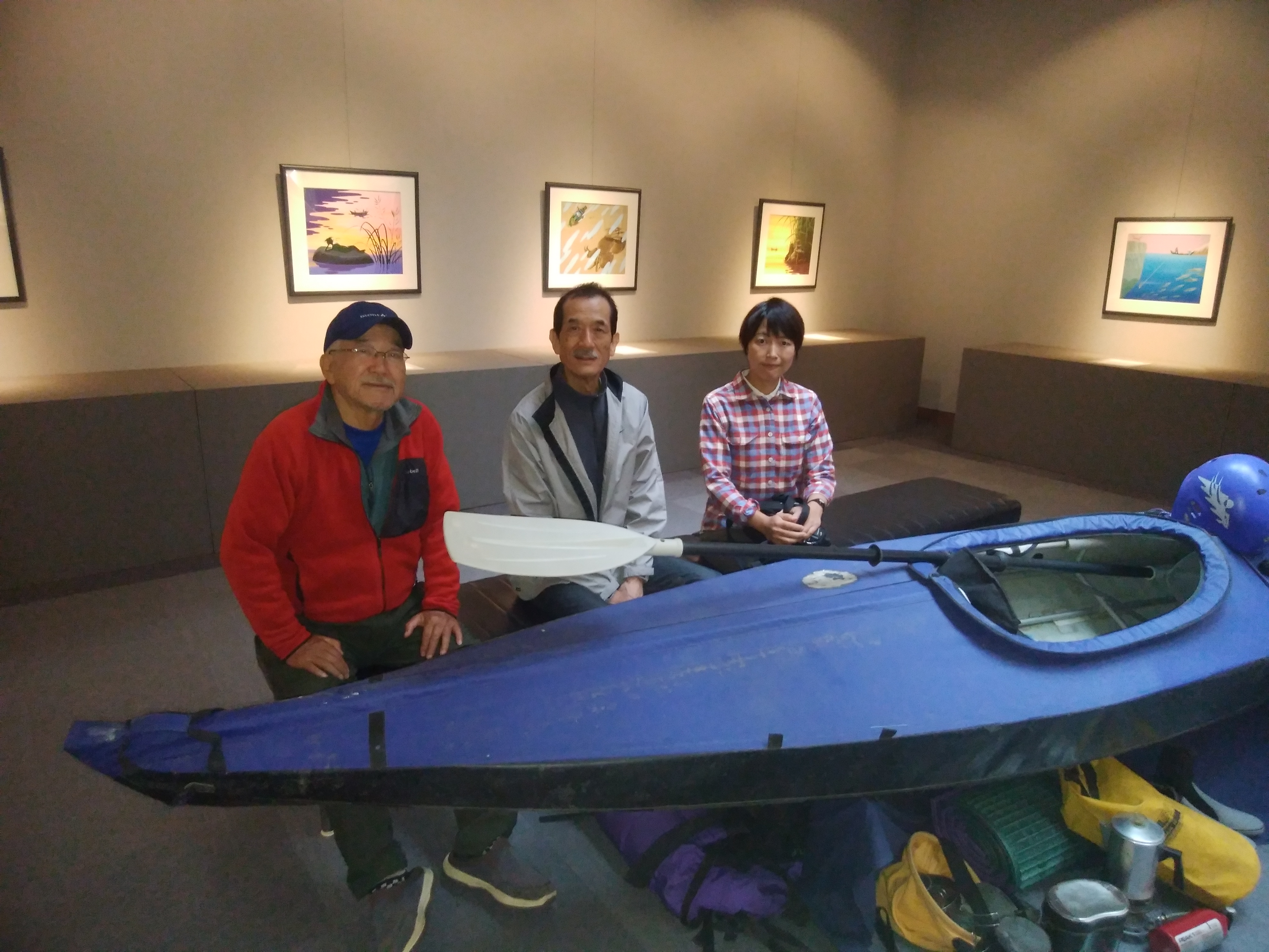 8日・9日に飯山「森の家」の恒例イヴェント「カヌー教室」で四国からいらしていた野田知佑氏が、マネージャーさんと愛犬2匹と共に今年も帰りに美術館に寄ってくださいました。