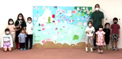 小布施町に藤岡牧夫美術館が開館していた頃から、町の交流部会の皆さんと教育委員会の方々のお力で「お絵描き教室」を夏と冬に開催してきました。閉館した今もそのイヴェントはいて続いて15回目になります。途中コロナ禍で3回ほどお休みをしました。今もその影響は出ています。今回来てくれたお子さんは絵を描くのが大好きで集中していてやめられません。幼稚園児から小学生高学年の子どもたちは「カッパと遊ぼう」の題をヒントに始めは「カッパ??」見たことない、なんて言いながら藤岡の描いたカッパにスイカをあげたり、「こんにちは」をしたりでしたがそのうちどんどんカッパから離れて大空や川や岩に自由に好きな絵を描いては貼っていきます。これだから子どもの絵は楽しいのです。これからと言うときに時間が来ました。