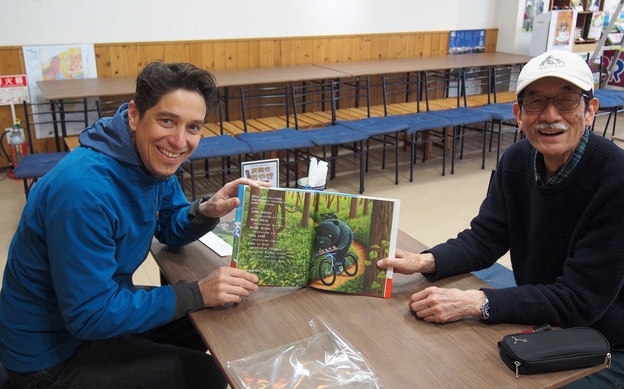 2023年4月11日 / 最終更新日時 : 2023年4月11日 藤岡美鈴 日々のスケッチ 池田町のランドルさんに会う 「森のくまさん北アルプスのたび①」の本作りのため協力していただいたランドルさんに出来上がった本を緑の基金の笹原さんと届けに行きました。マウンテンバイクにクマの親子と子供たちが乗って歌を唄いながら駆け抜けていく様子にランドルさんは大変喜んでおられました。 風景写真は国立アルプスあずみの公園からの北アルプスの眺めが素晴らしいので行きましたが生憎の天気で見られませんでした。