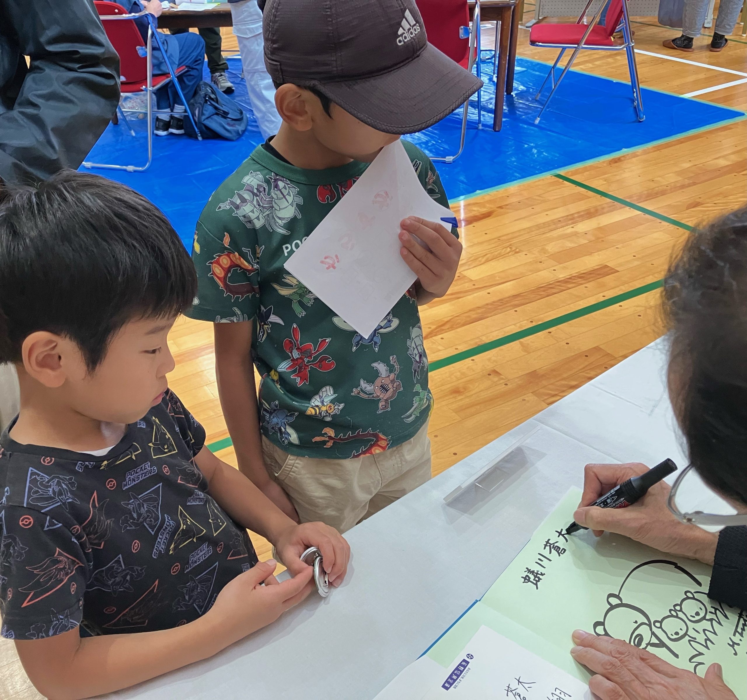 7・8日の連休に「安曇野環境フェア」が堀金総合体育館で企画されました。同時開催で烏川渓谷緑地開演20周年記念として「森のくまさん『北アルプスのたび①』の原画展と絵本読み聞かせ」やツキノワグマのお話し、ワークショップやクイズラリー、パネル展示など面白くて楽しく過ごせてその上とっても勉強になるイベントでした。