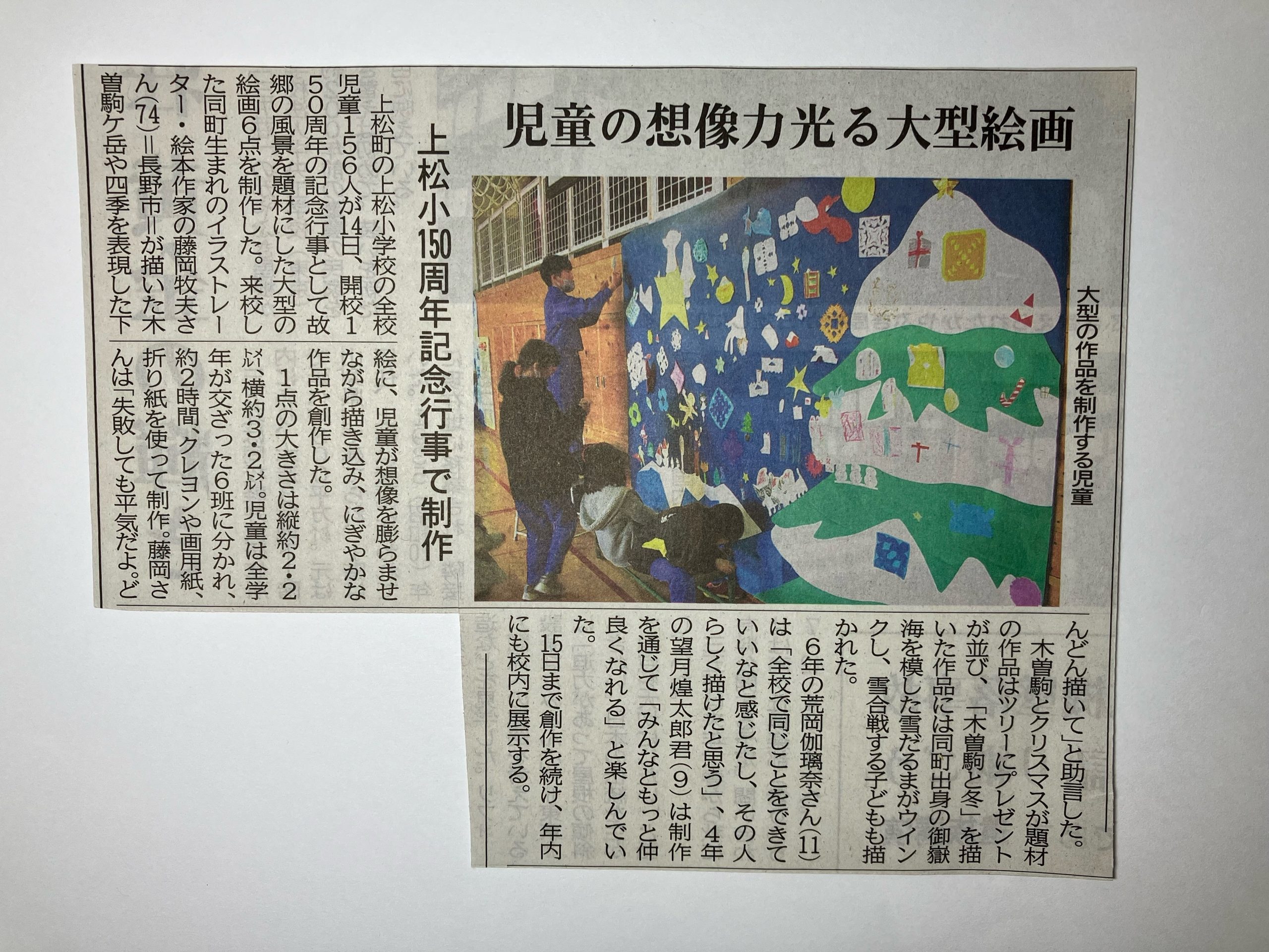 2023年12月22日 / 最終更新日時 : 2023年12月22日 藤岡美鈴 日々のスケッチ 信濃毎日新聞に掲載された上松小学校 上松小学校150設立周年記念のワークショップの様子が信濃毎日新聞に掲載されました。 翌日15日の新聞
