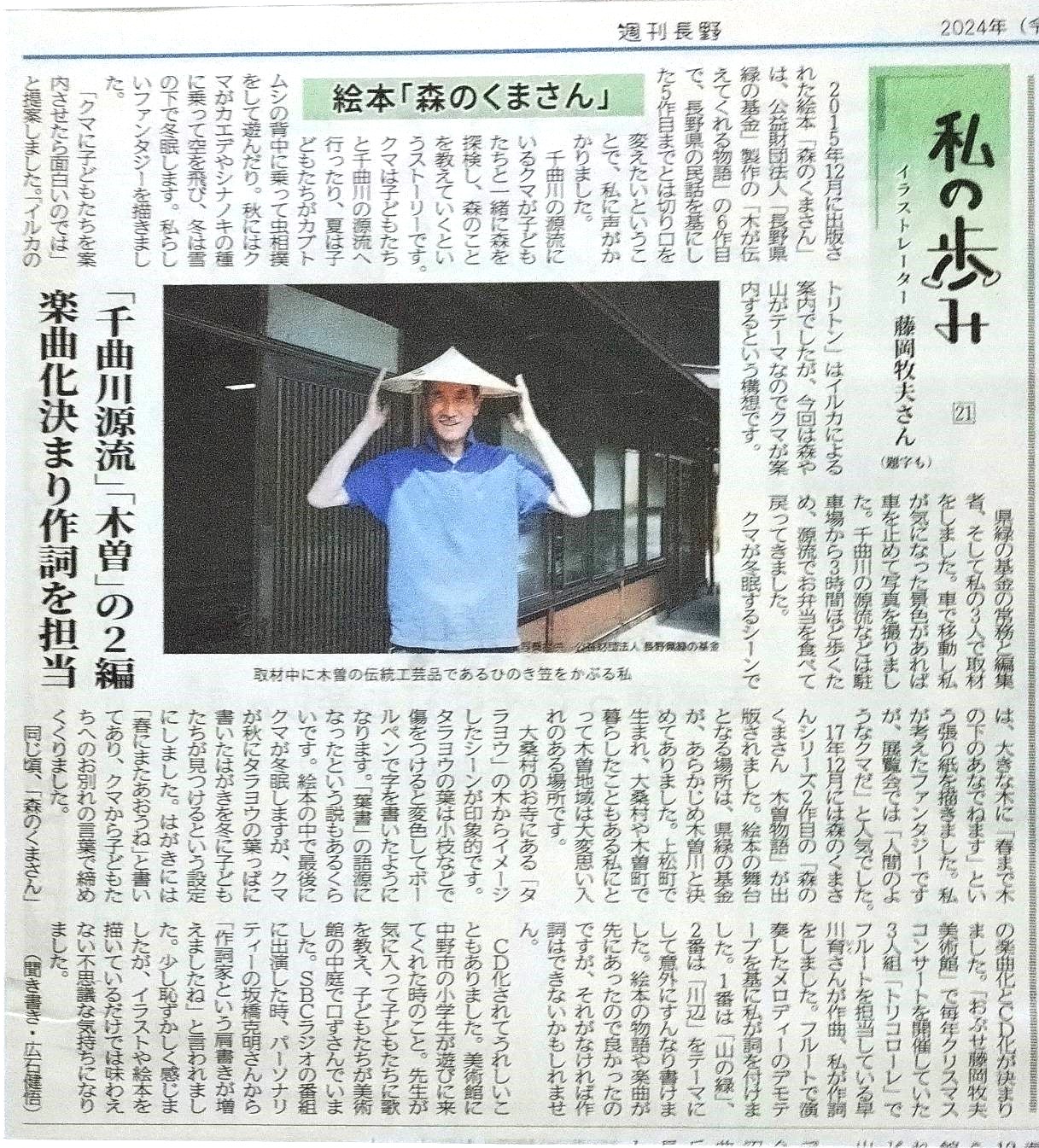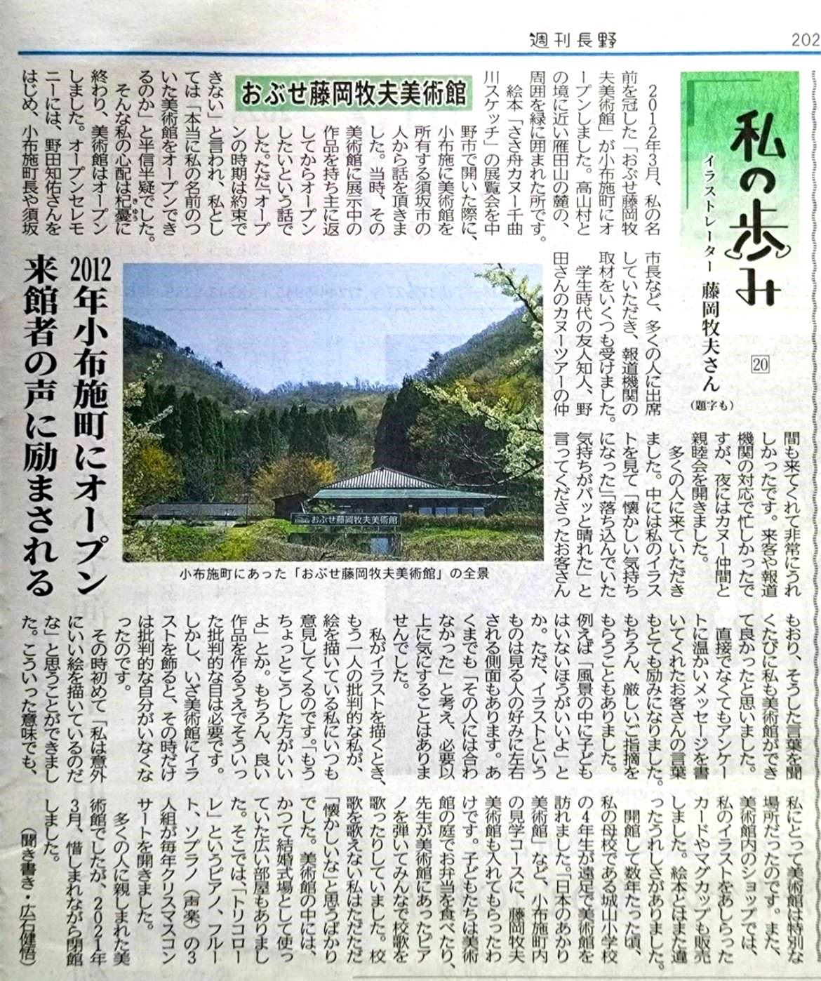 2024年12月7日 / 最終更新日時 : 2025年4月5日 藤岡美鈴 私の歩み 週間長野「私の歩み」美術館時代が続きます。 おぶせ藤岡牧夫美術館 ここへは野田知佑さんが毎年奥さんと犬とつれて来てくださいました。 「絵本 森のくまさん」